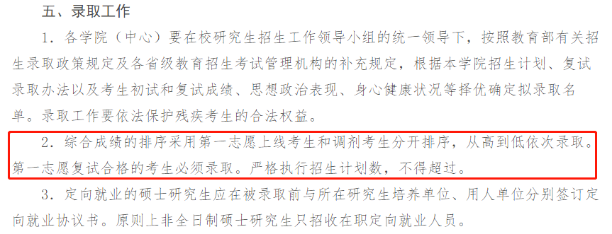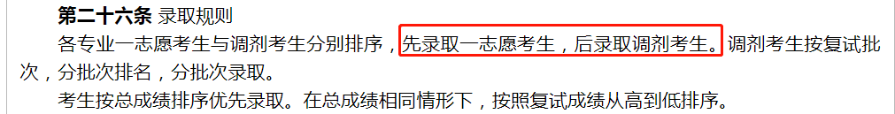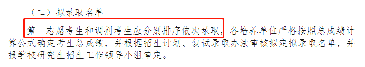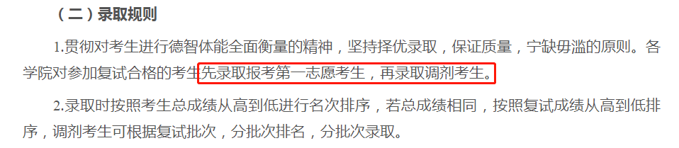 各学院(部)对参加复试合格的考生先录取报考第一志愿考生,再录取调剂考生。