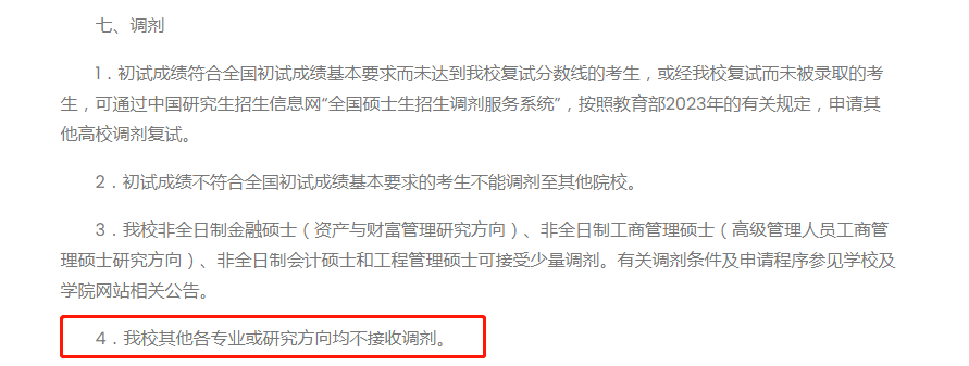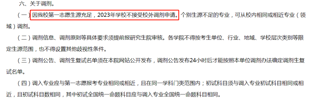 我校第一志愿生源充足,2023年学校不接受校外调剂申请。个别生源不足的专业,可从校内相同或相近专业(领域)调剂。